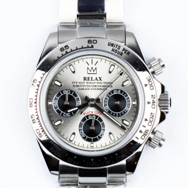 Relax parody watches are the perfect way to make a statement without saying a word. Custom built with high quality parts that are sure to last, this watch is both reliable and funny. Whether you’re looking for a conversation starter, or just a unique way to express your style with a sense of humor, a Relax watch does it all.